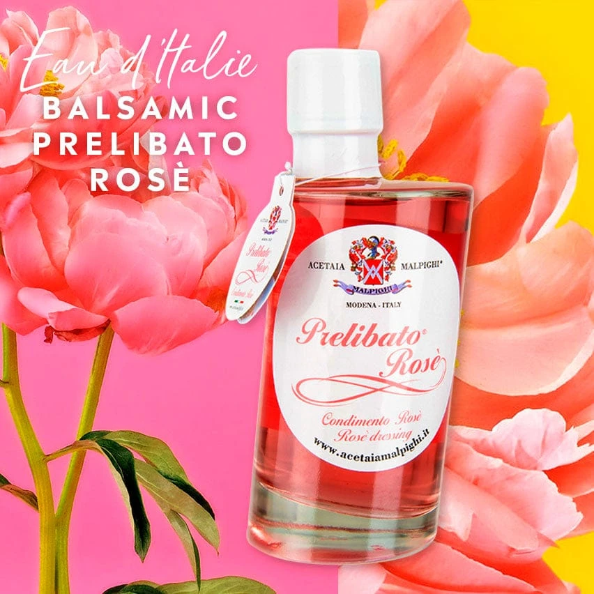 Prelibato Rosé is a condiment based of must obtained by the Trebbiano and Ancellotta grapes, with the addition of attar of roses cultivated at the family owned Estate. It aged for 5 years in ash tree barrels.