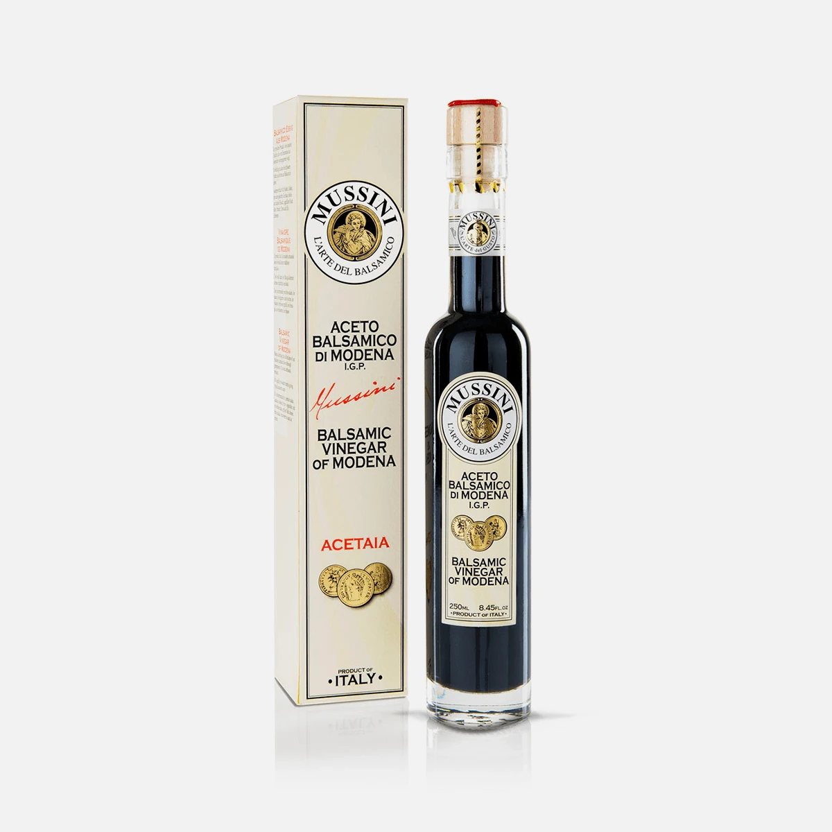 This particular and exclusive product line was the first line of Balsamico MUSSINI to receive the recognition of the Protected Geographical Indication and represented the classic aesthetic taste of MUSSINI.